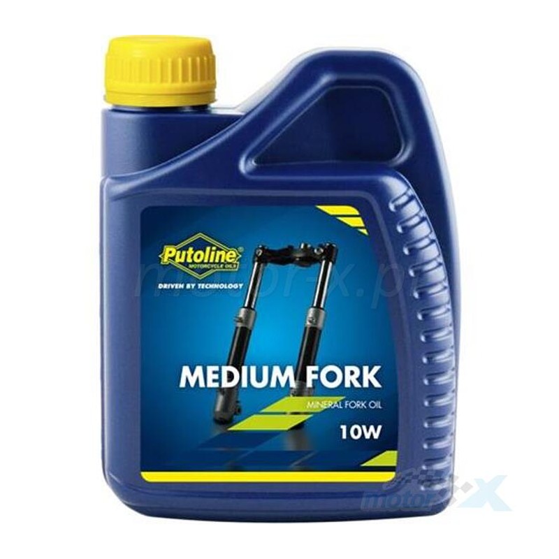 PUTOLINE Medium Fork to mineralny olej do widelców SAE 10 przeznaczony do regularnego użytku drogowego. Nadaje się do skuterów i motorowerów z widelcem konwencjonalnym lub upside-down.